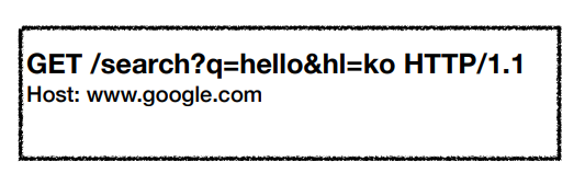 - 시작 라인: HTTP 메서드(GET), 요청 대상(/search?q=hello&hl=ko), HTTP Version(HTTP/1.1)